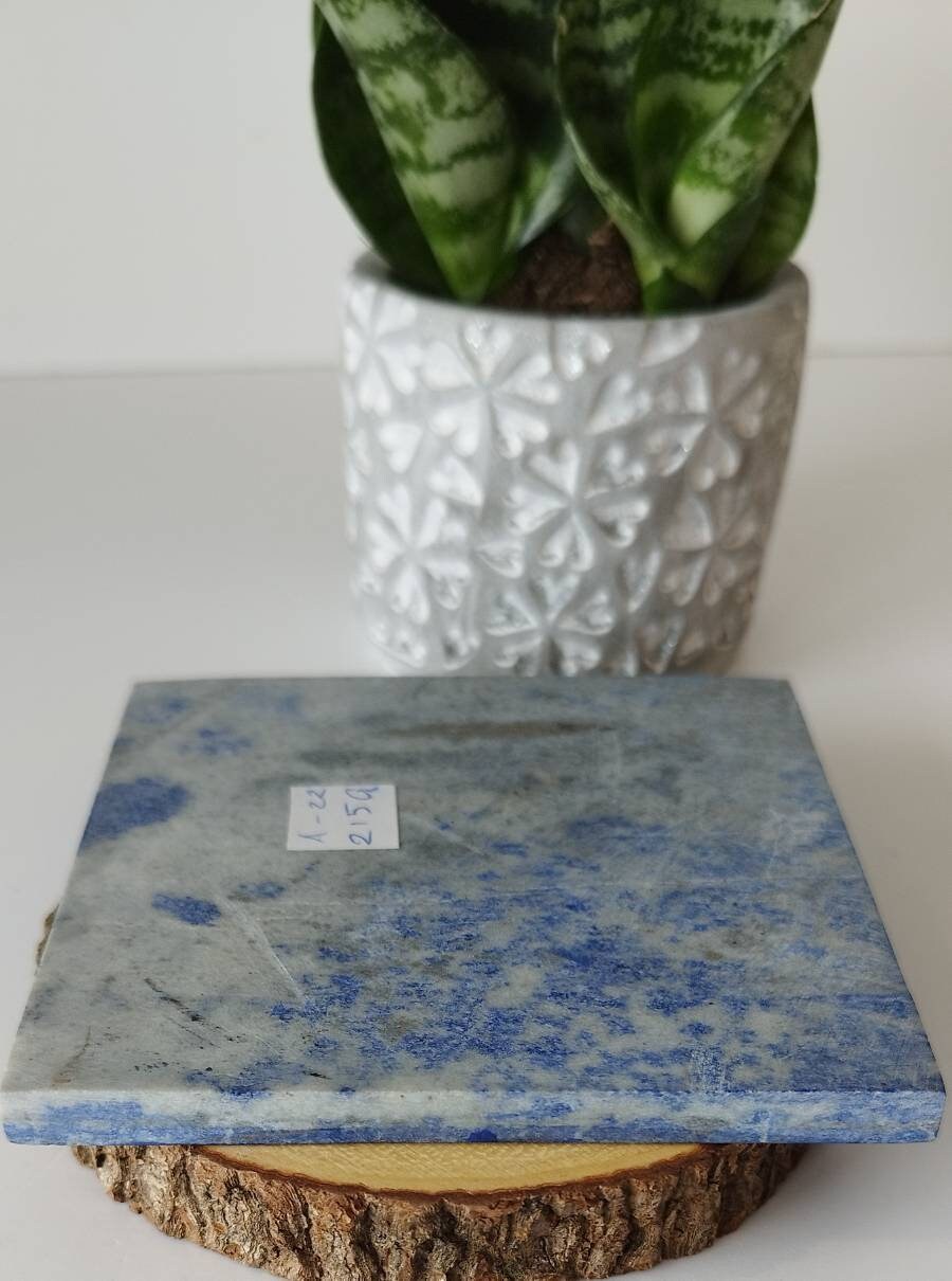 Lapis lazuli contains pyrite which gives more character to the rock. One side is naturally hand polished. Lapis Lazuli comes from deep within Afghanistan a place called Badakhshan near the silk road.