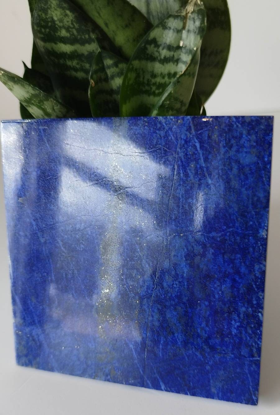 Unlike other Lapis Lazuli tiles, the ones we sell come from a whole stone for each individual pile, meaning the design of the tile is much more polished, cleaner, without a void of the royal blue theme, and it does not look like multiple small pieces of lapis were just put together. This is truly one of a kind, and is also much more durable than the mosaic ones.