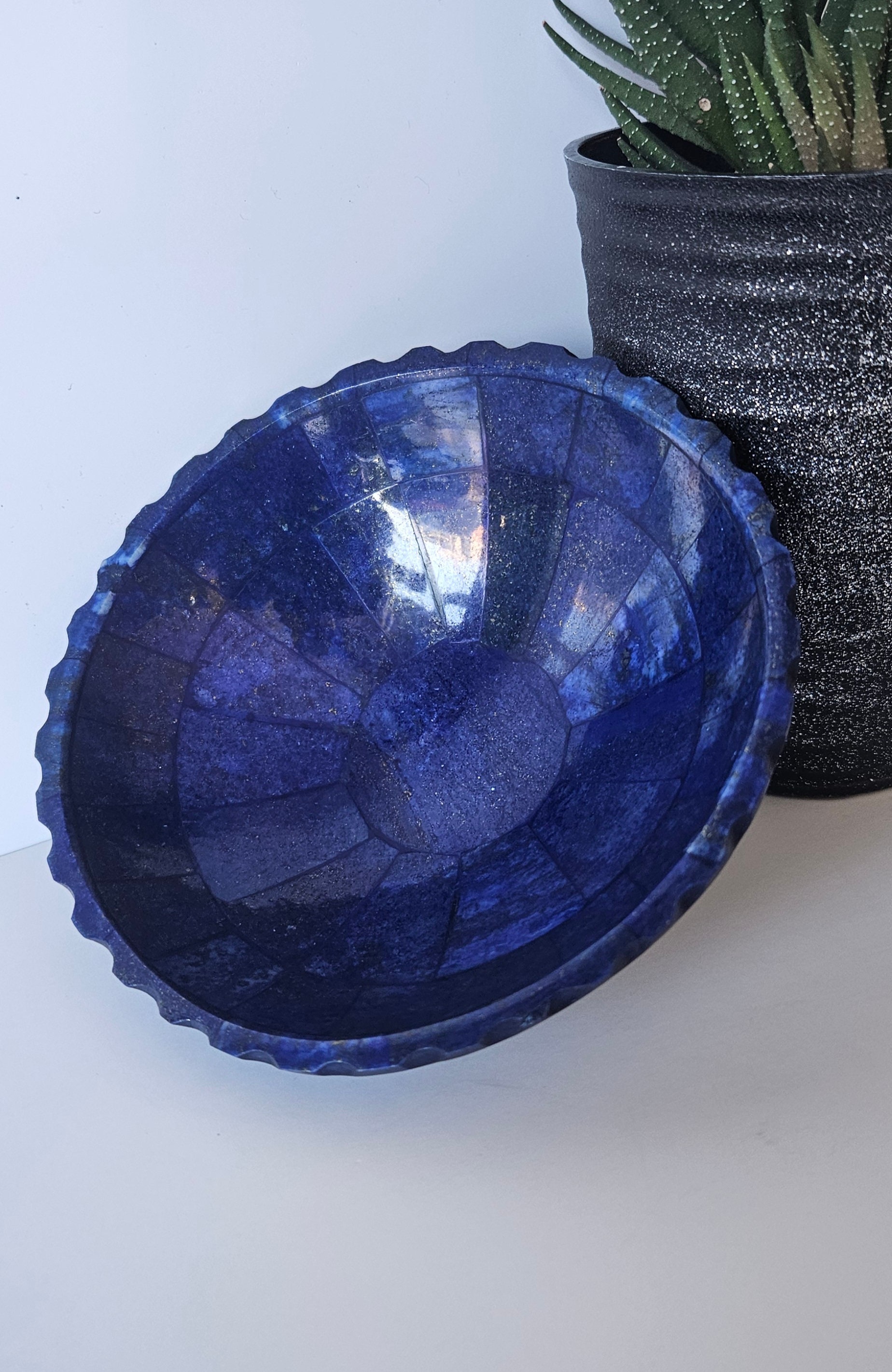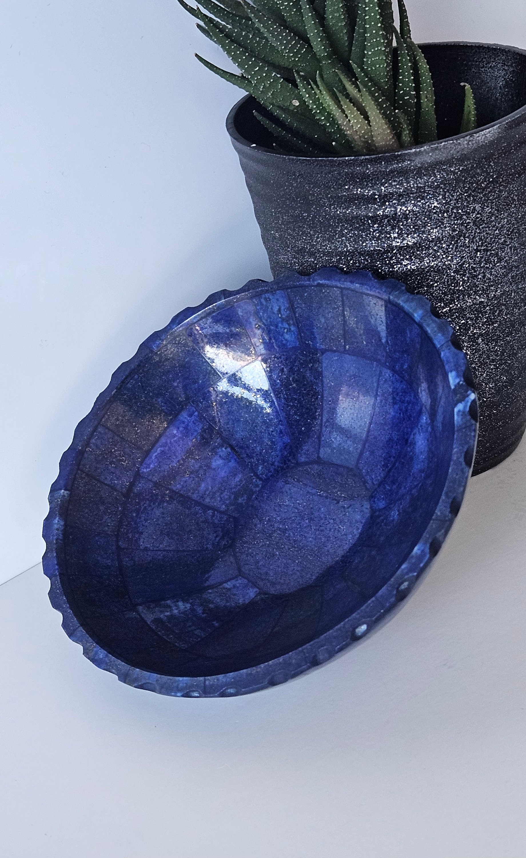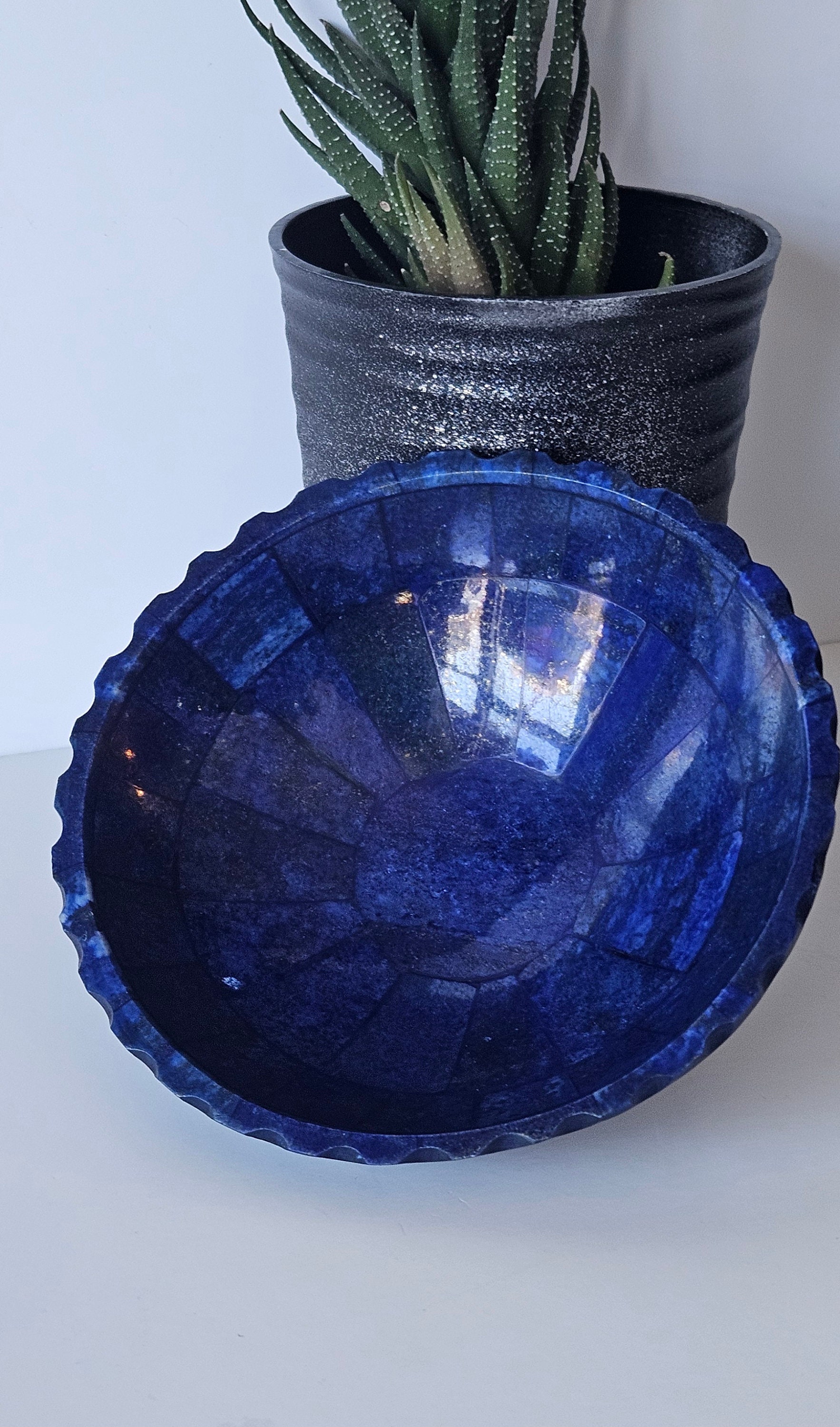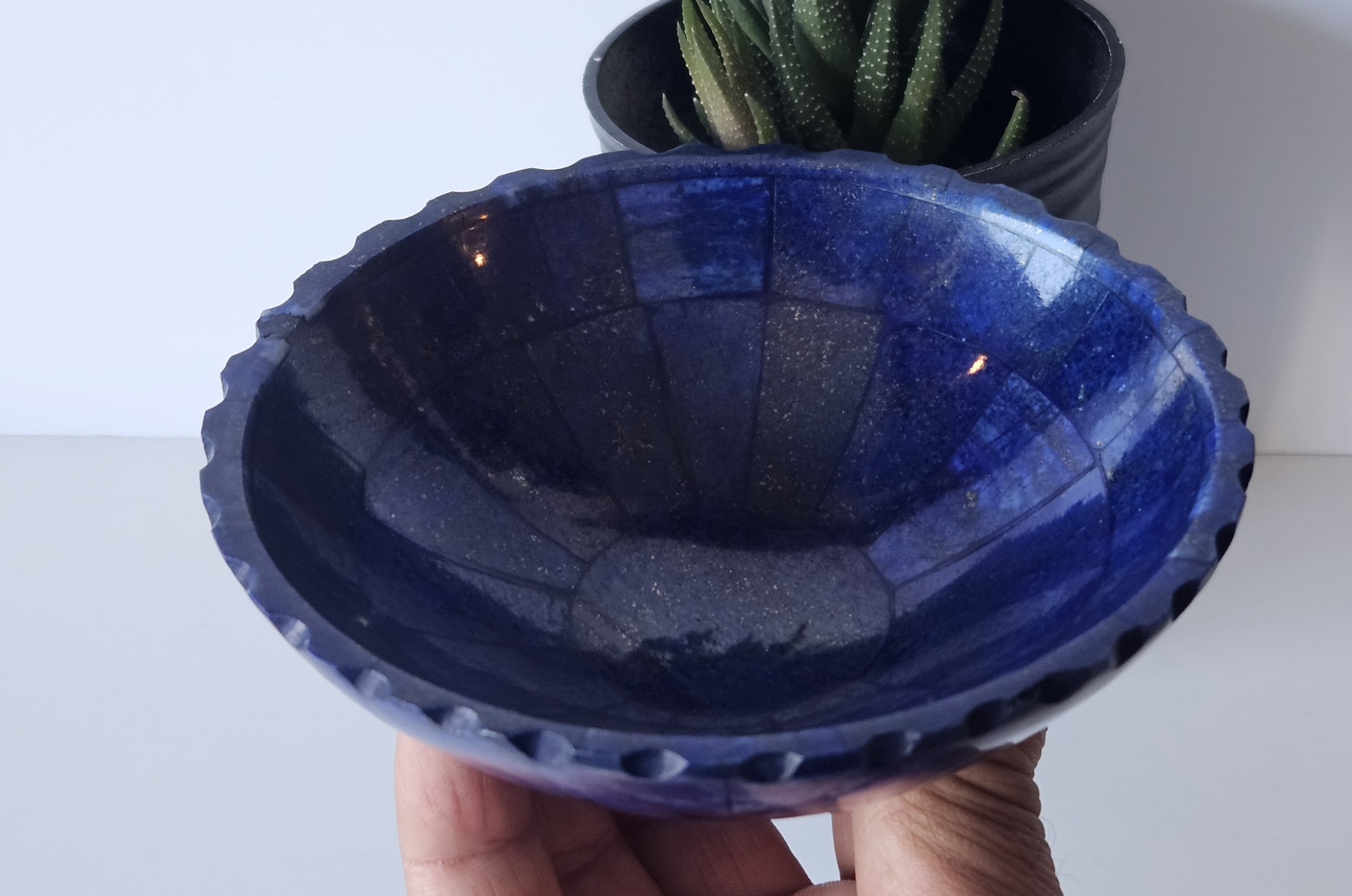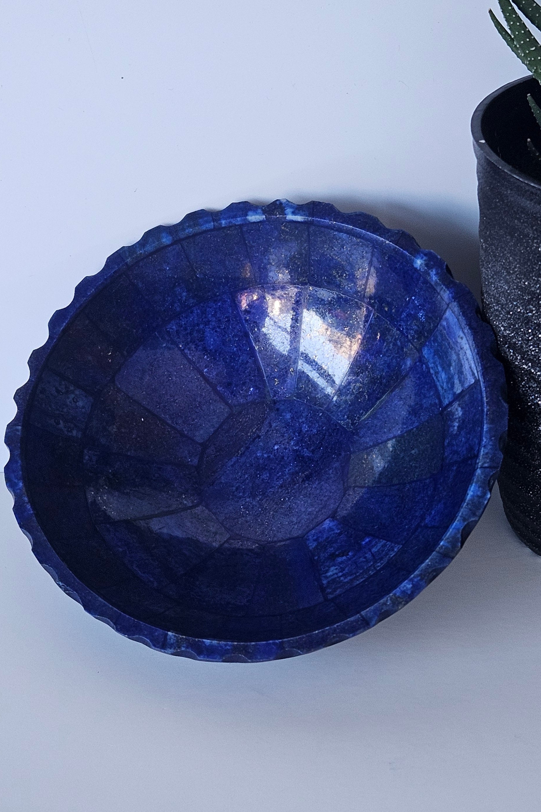 Home Plates 13 Cm Hand Crafted Lapis Lazuli Bowl, Stunning Royal Blue Color Handmade bowl from Badakhshsan Afghanistan, stone bowl, healing stone bowl
