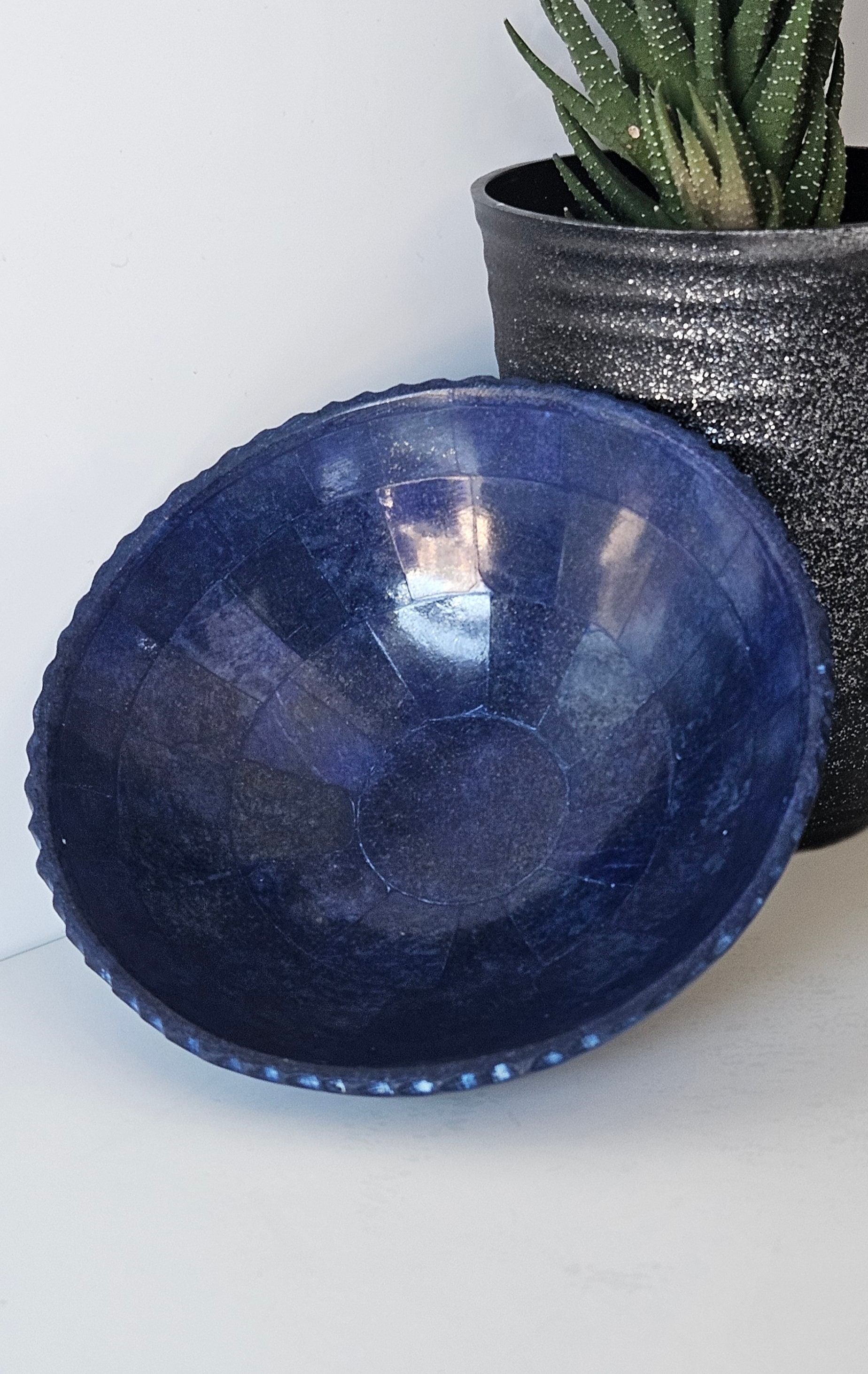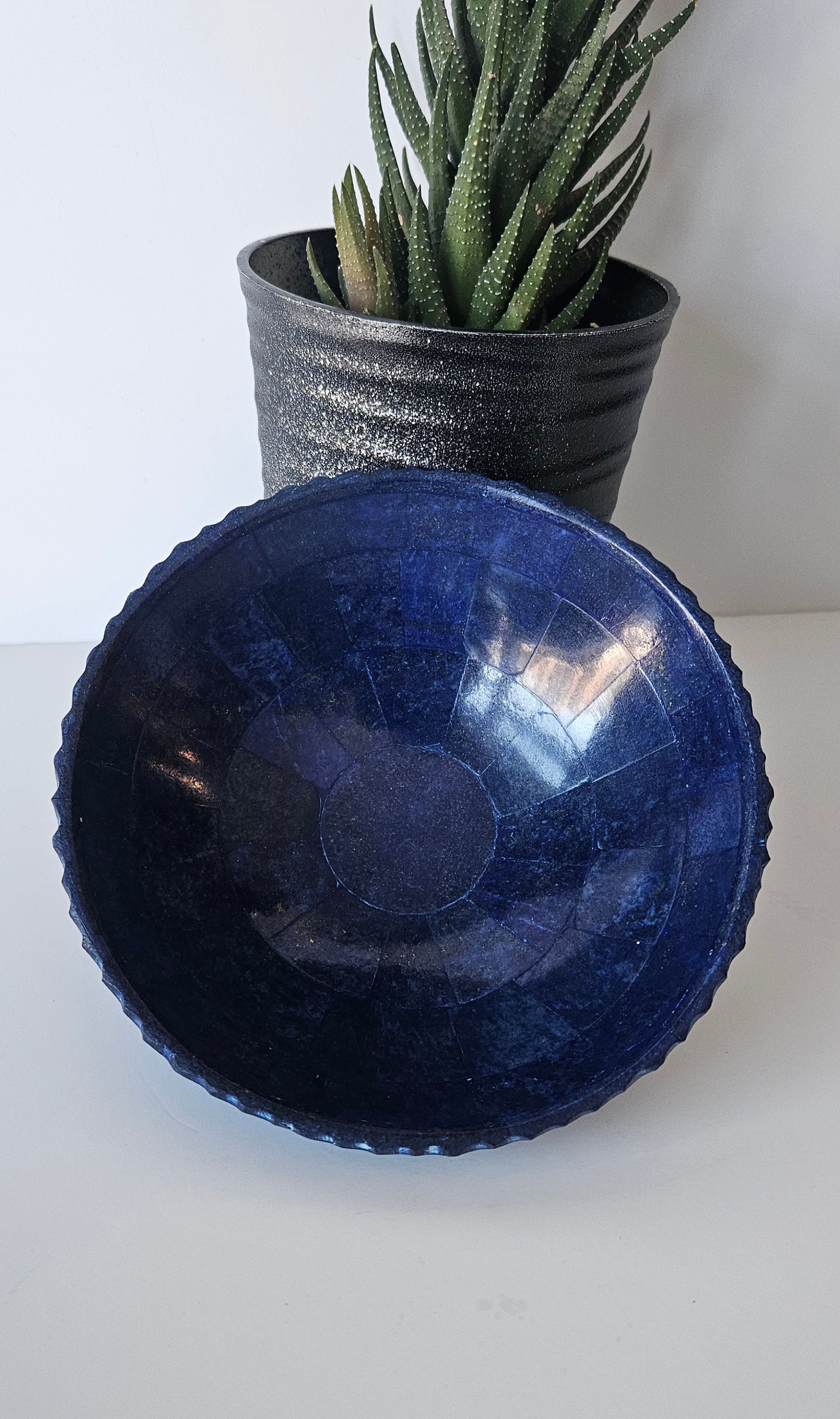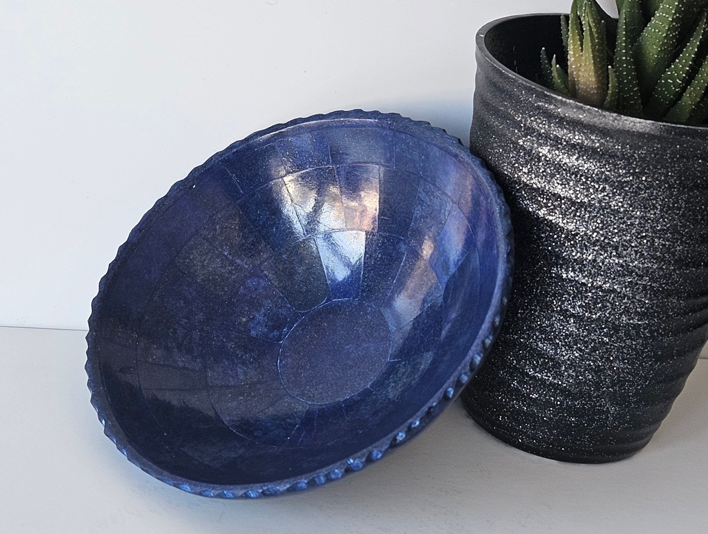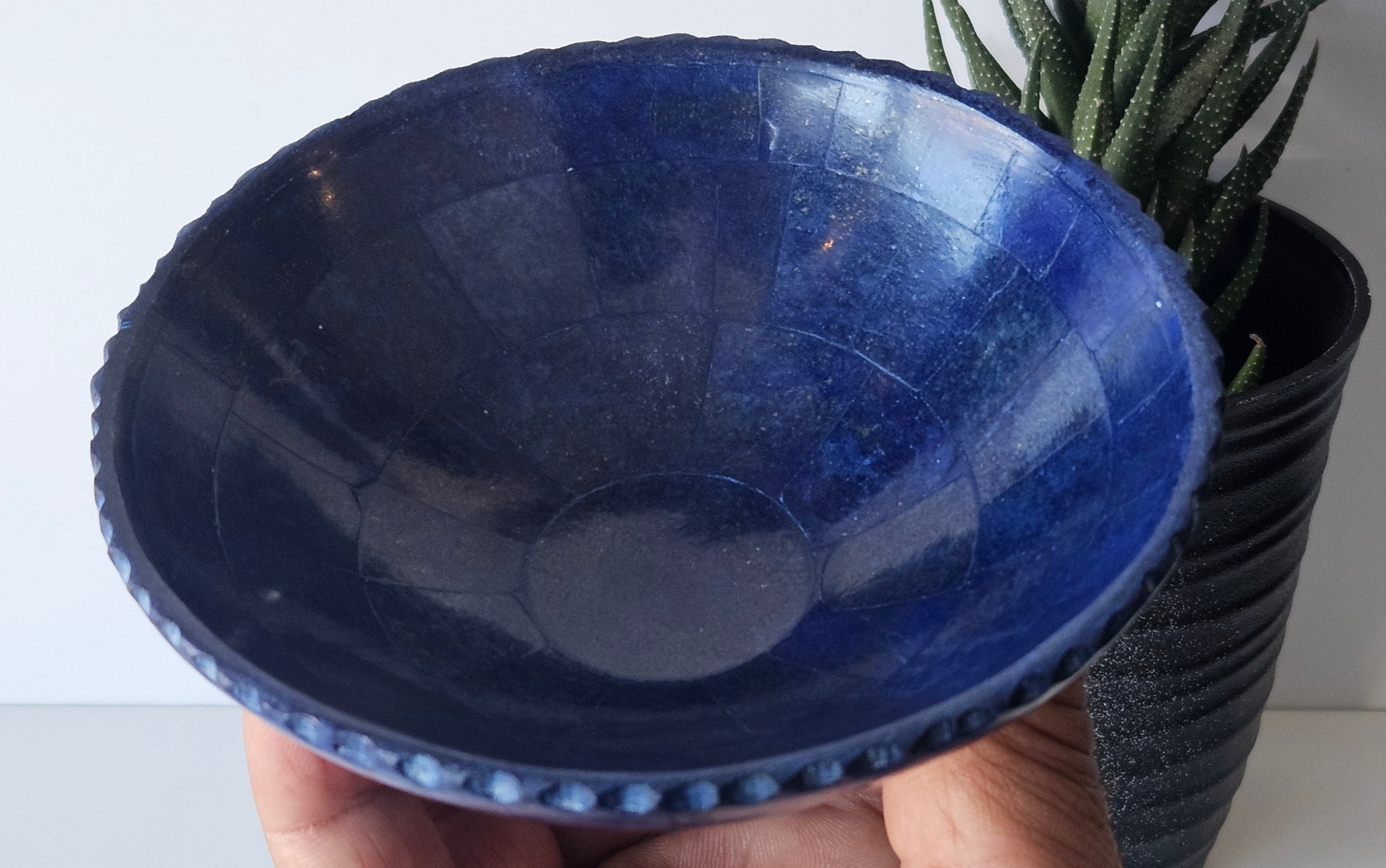 Home Plates 13 Cm Hand Crafted Lapis Lazuli Bowl, Stunning Royal Blue Color Handmade bowl from Badakhshsan Afghanistan, stone bowl, healing stone bowl