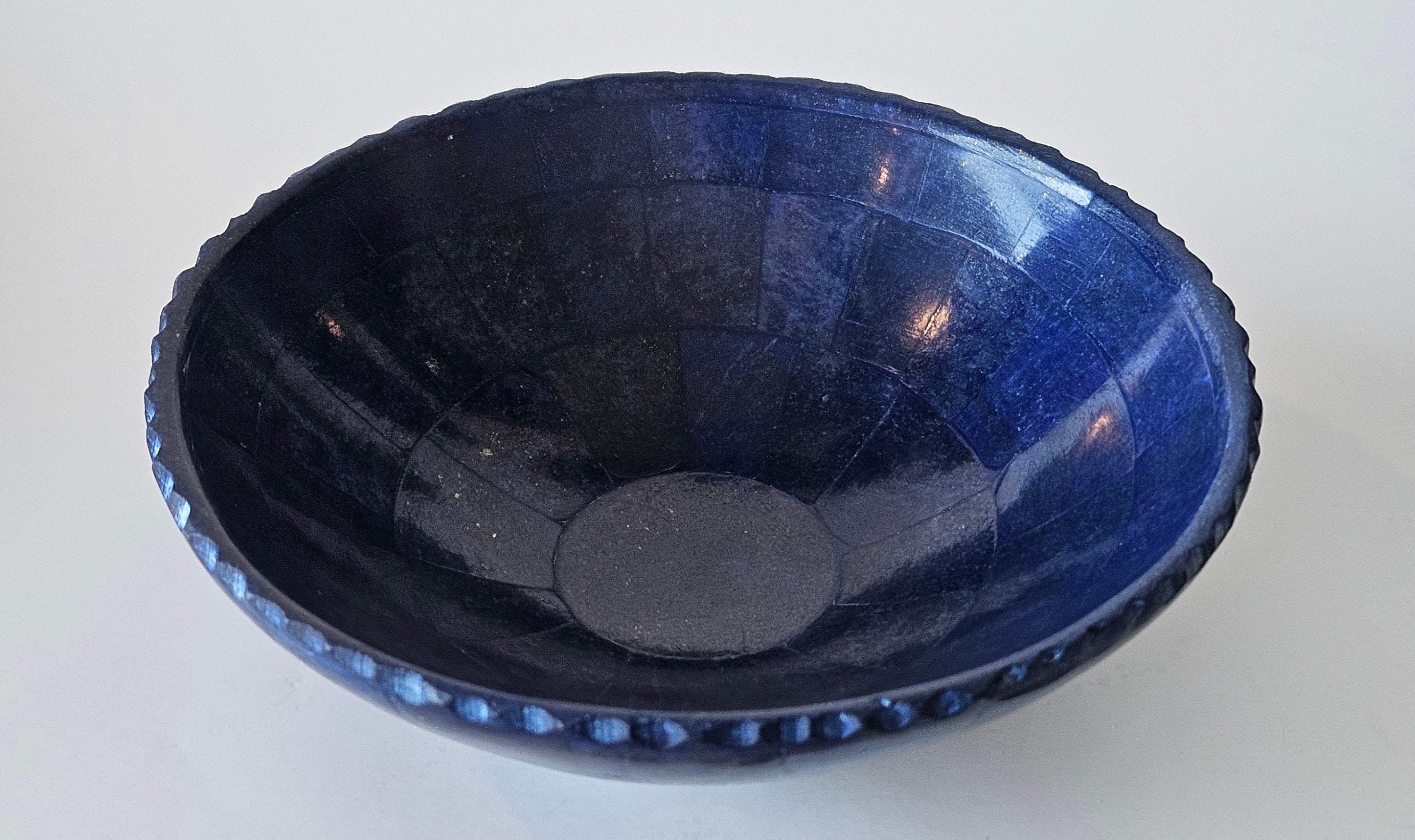 Hand Crafted stunning genuine Lapis Lazuli Gemstone bowel decorated from Afghanistan