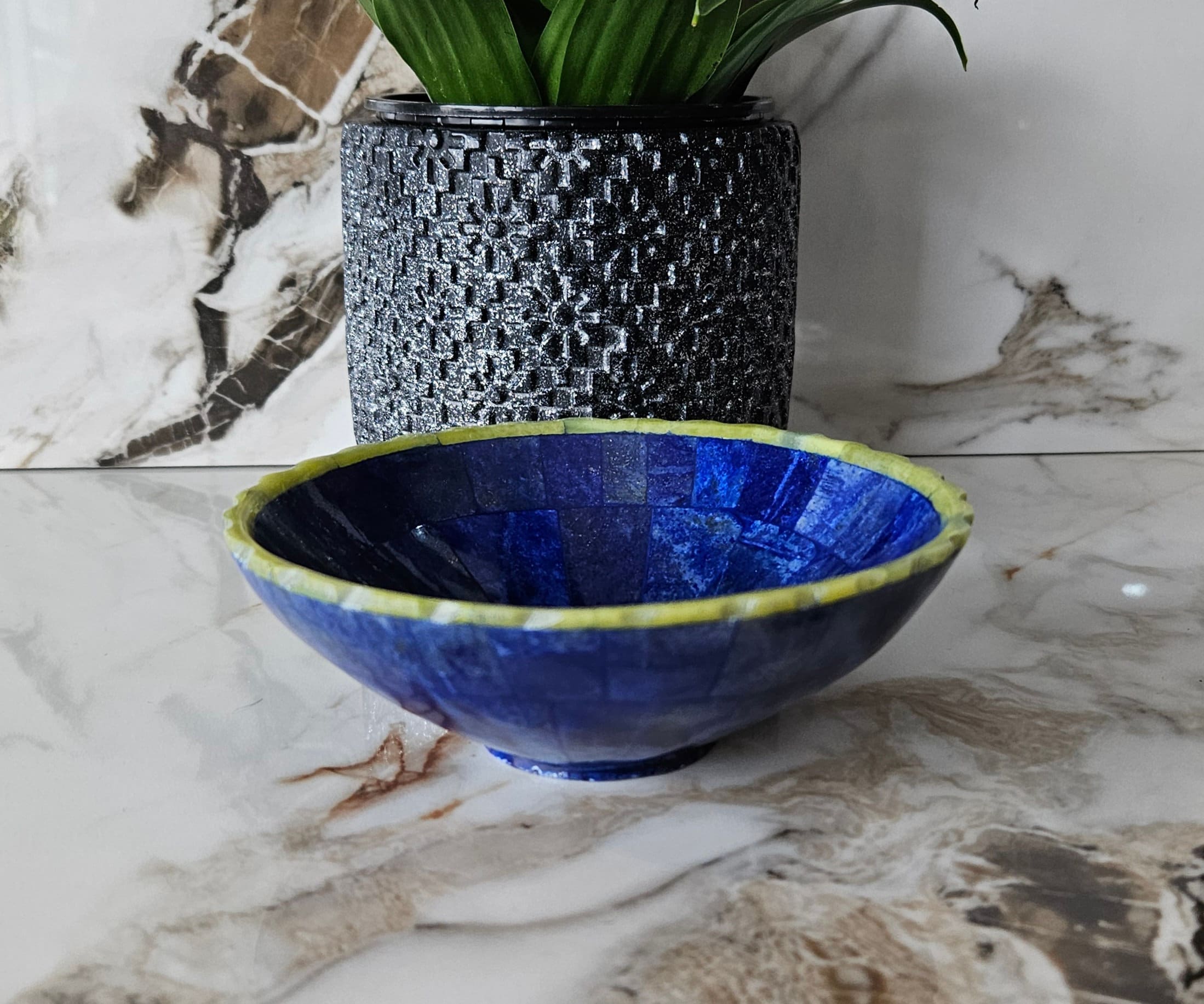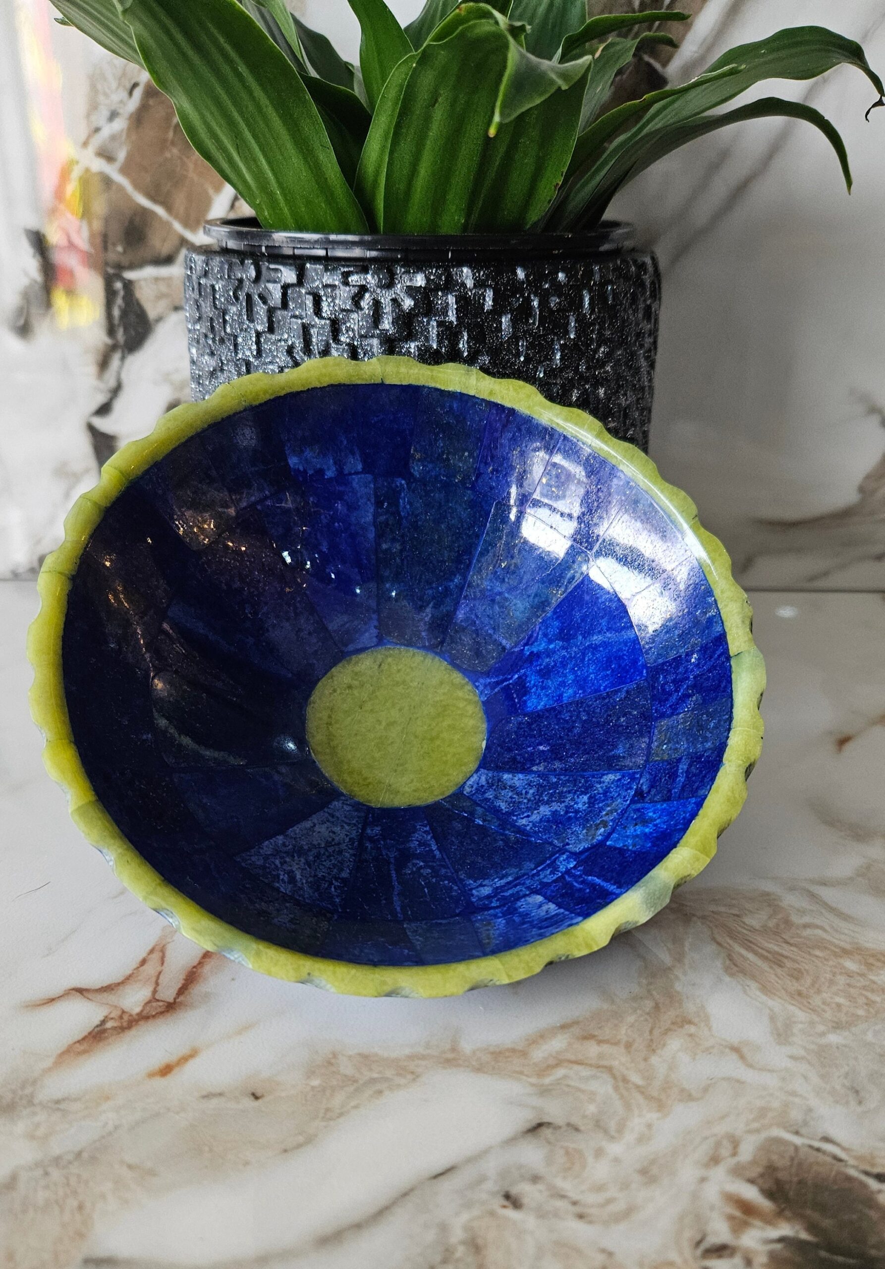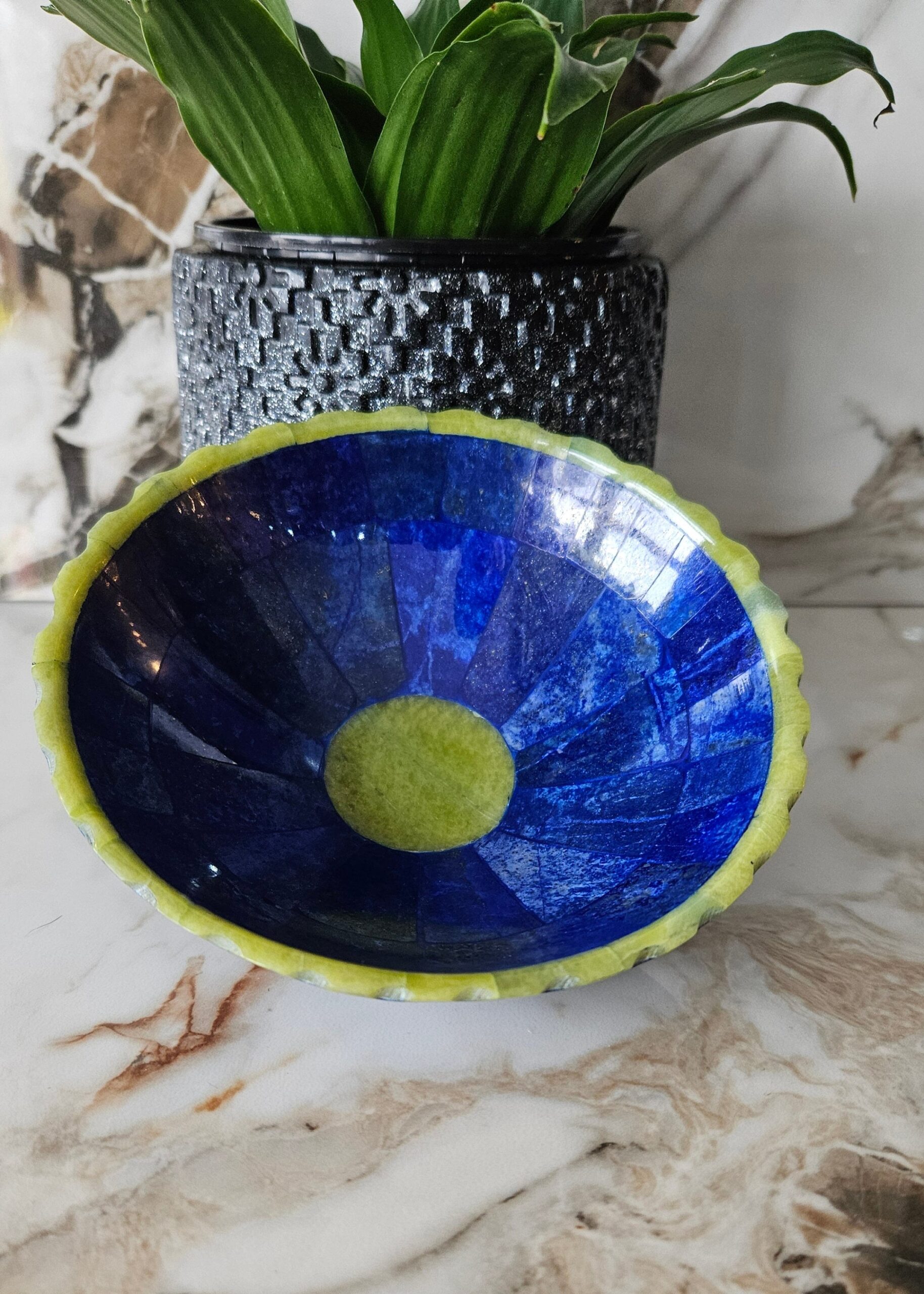 Hand Crafted stunning genuine Lapis Lazuli Gemstone bowel decorated from Afghanistan
