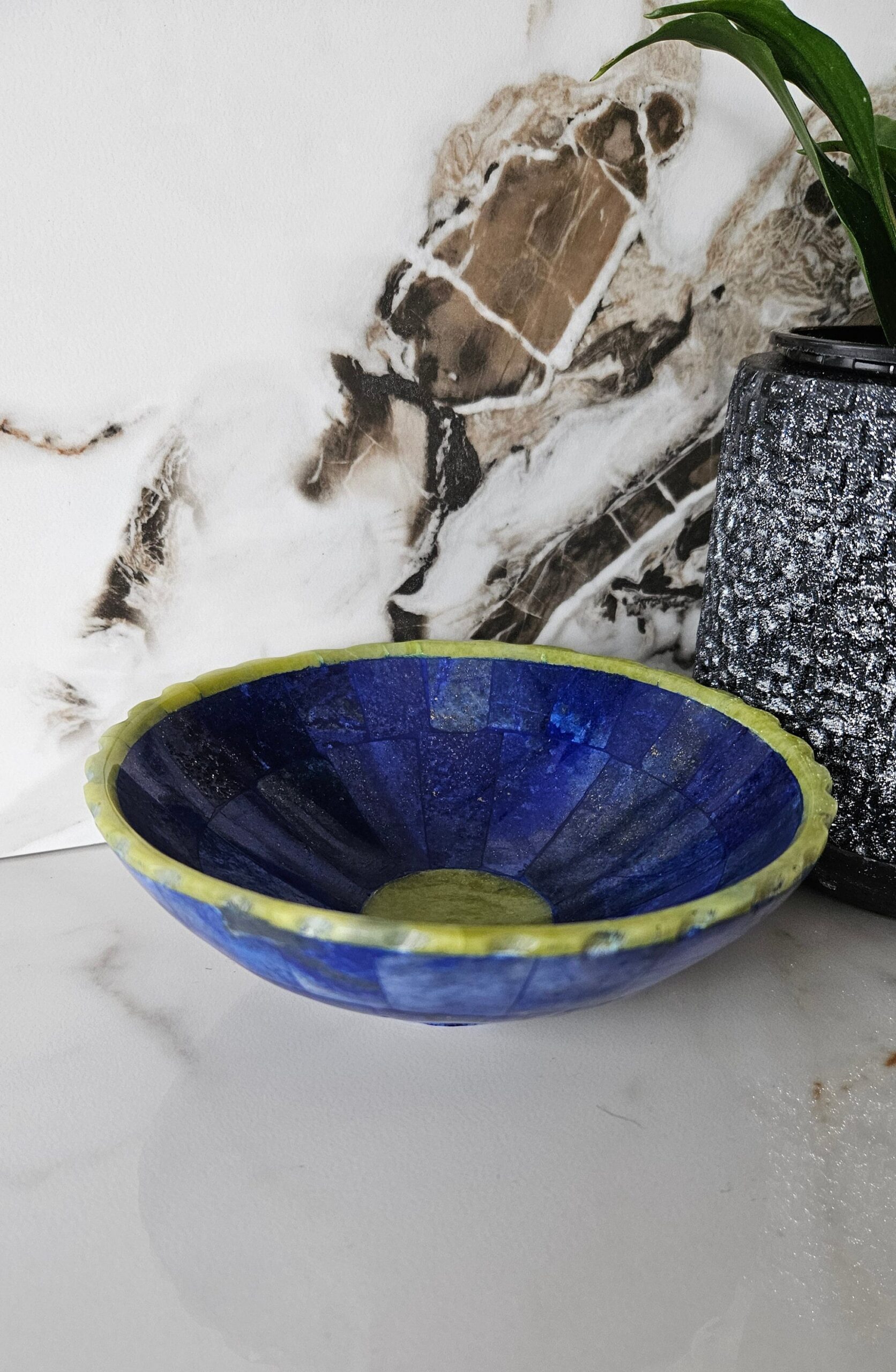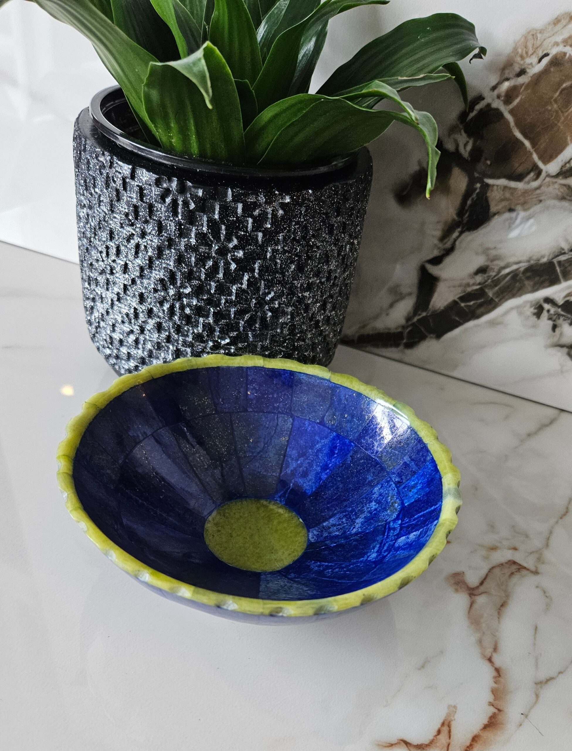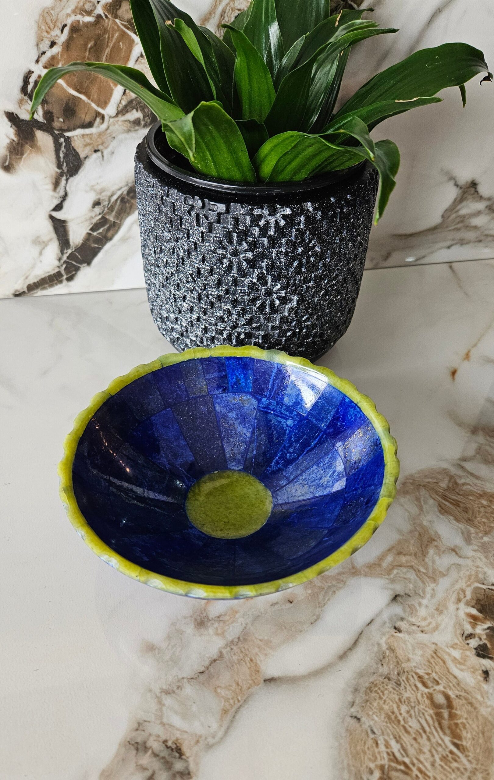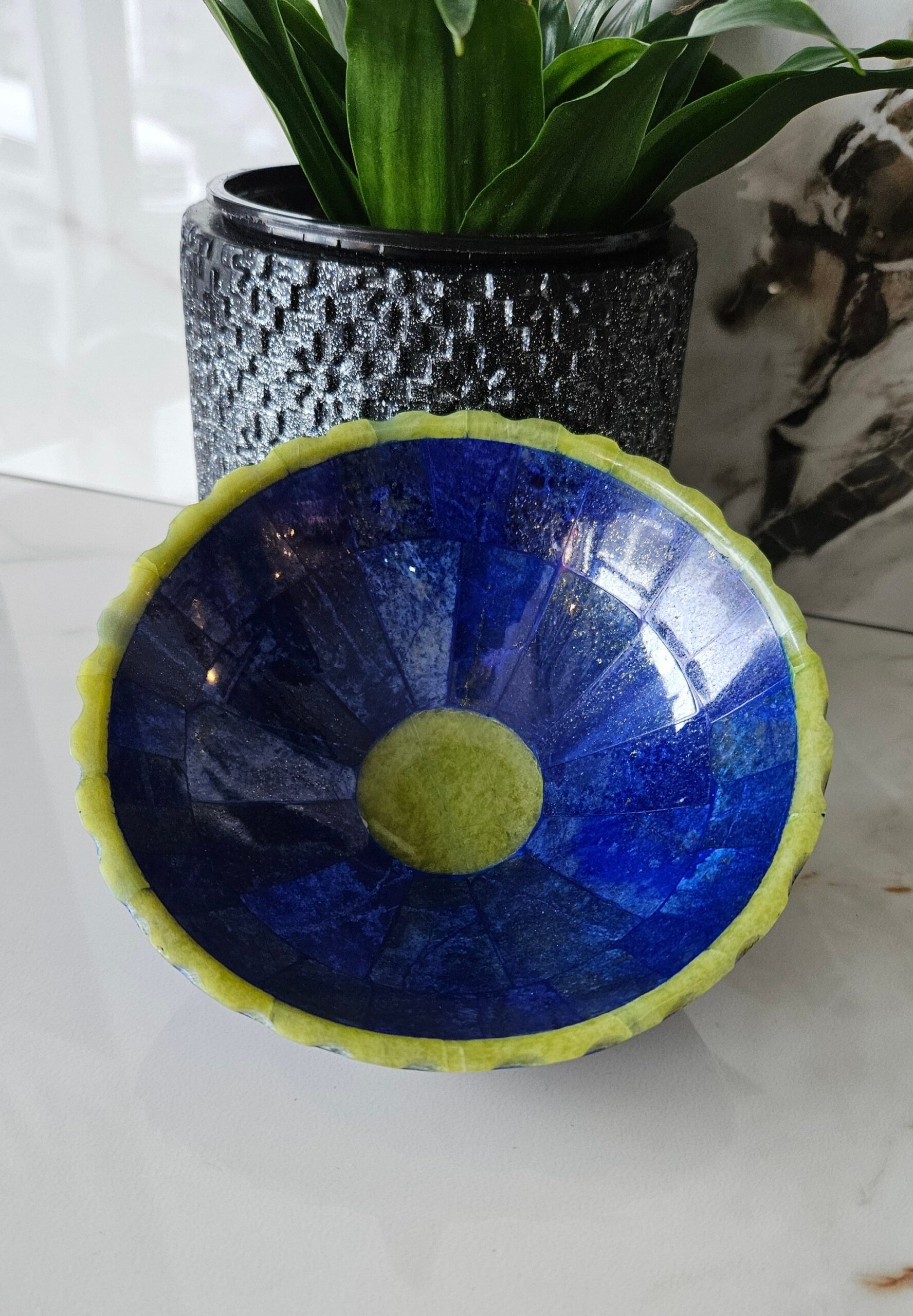 Hand Crafted stunning genuine Lapis Lazuli Gemstone bowel decorated from Afghanistan