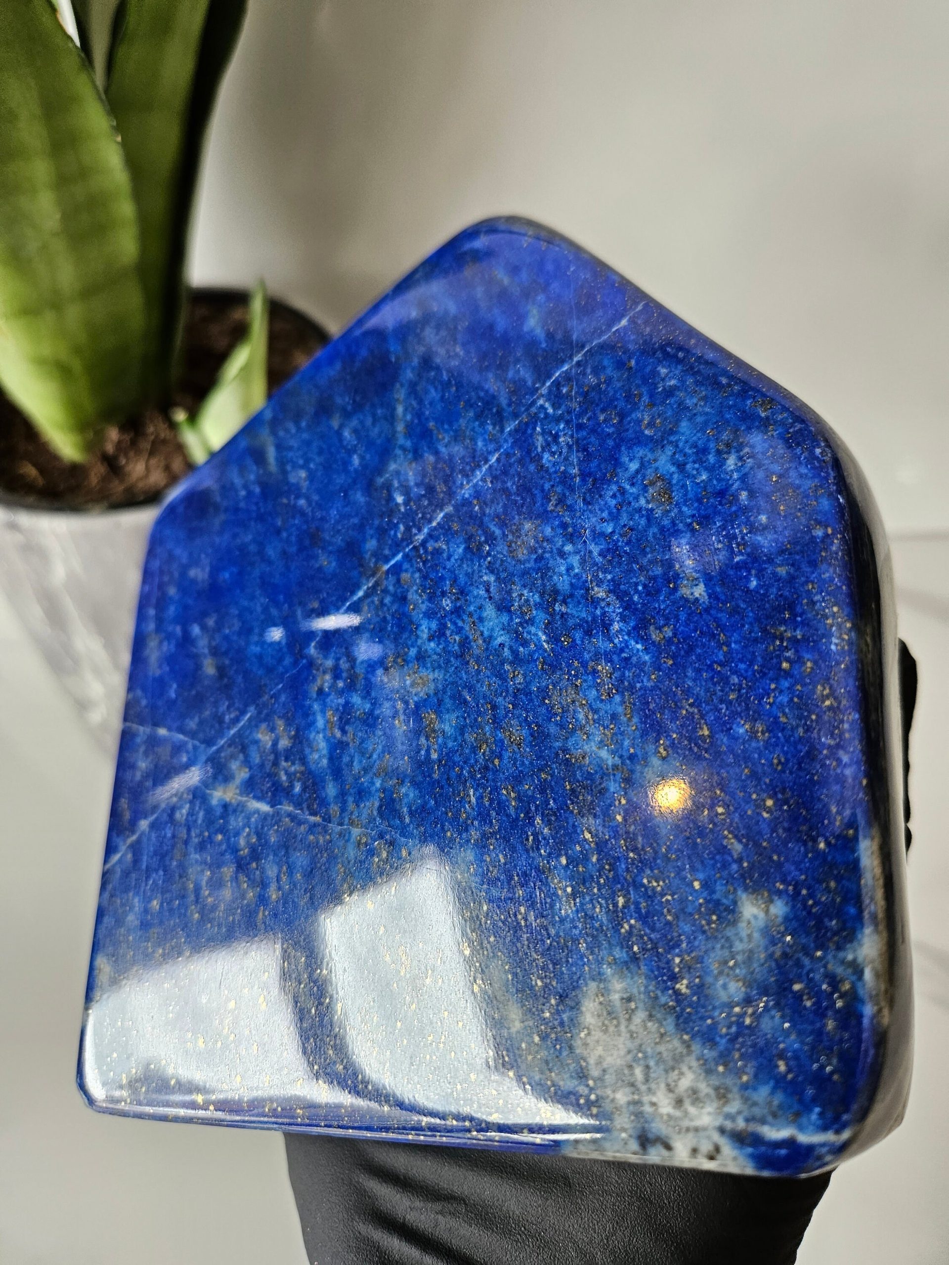 This is a unique A+++ Grade Lapis Lazuli from Afghanistan. All the pictures and videos were taken in natural sunlight to showcase its true color, and all the tiny details that make each of the stones unique.
