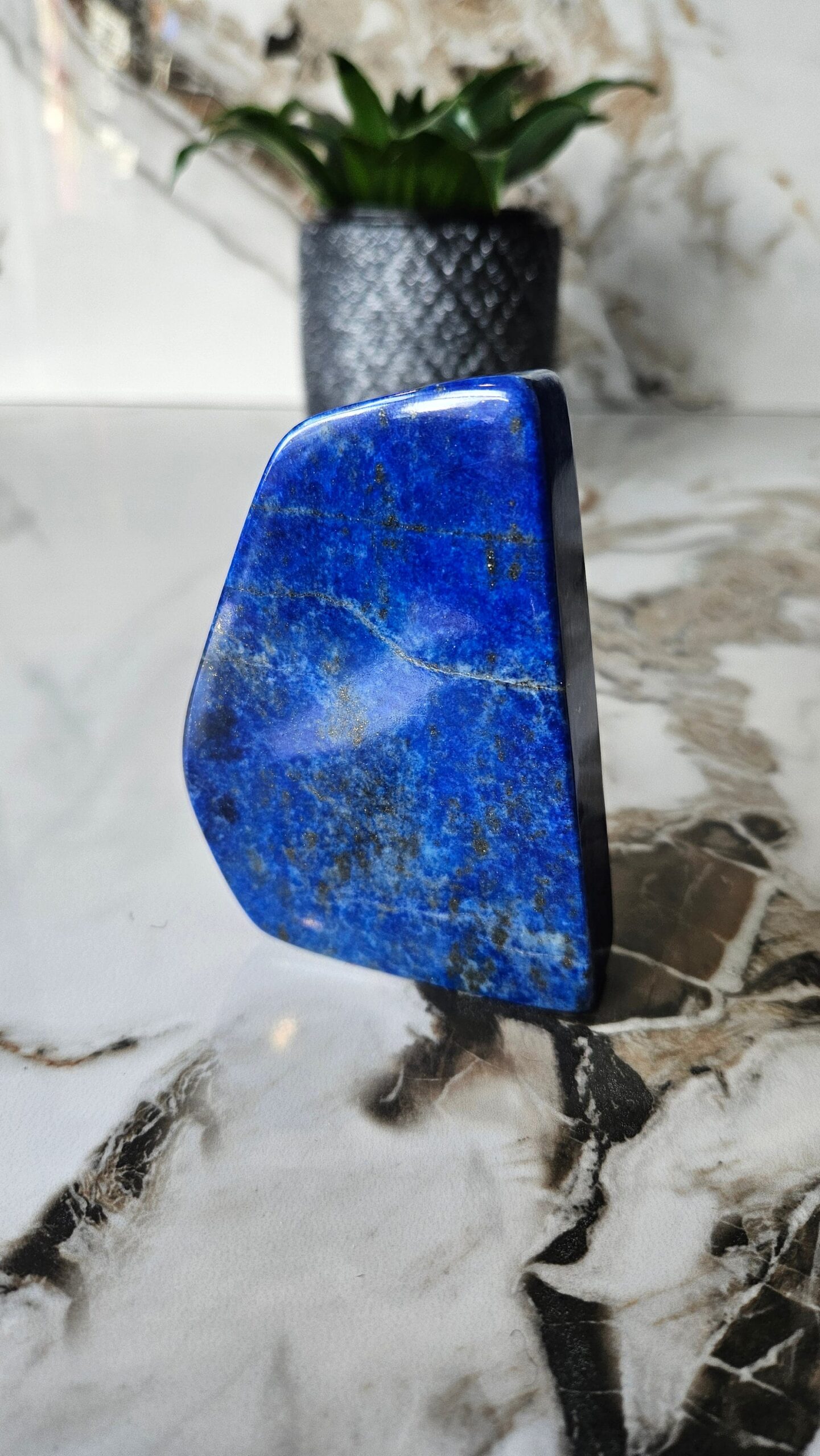 This is a unique A++ Grade Lapis Lazuli from Afghanistan. All the pictures and videos were taken in natural sunlight to showcase its true color, and all the tiny details that make each of the stones unique.