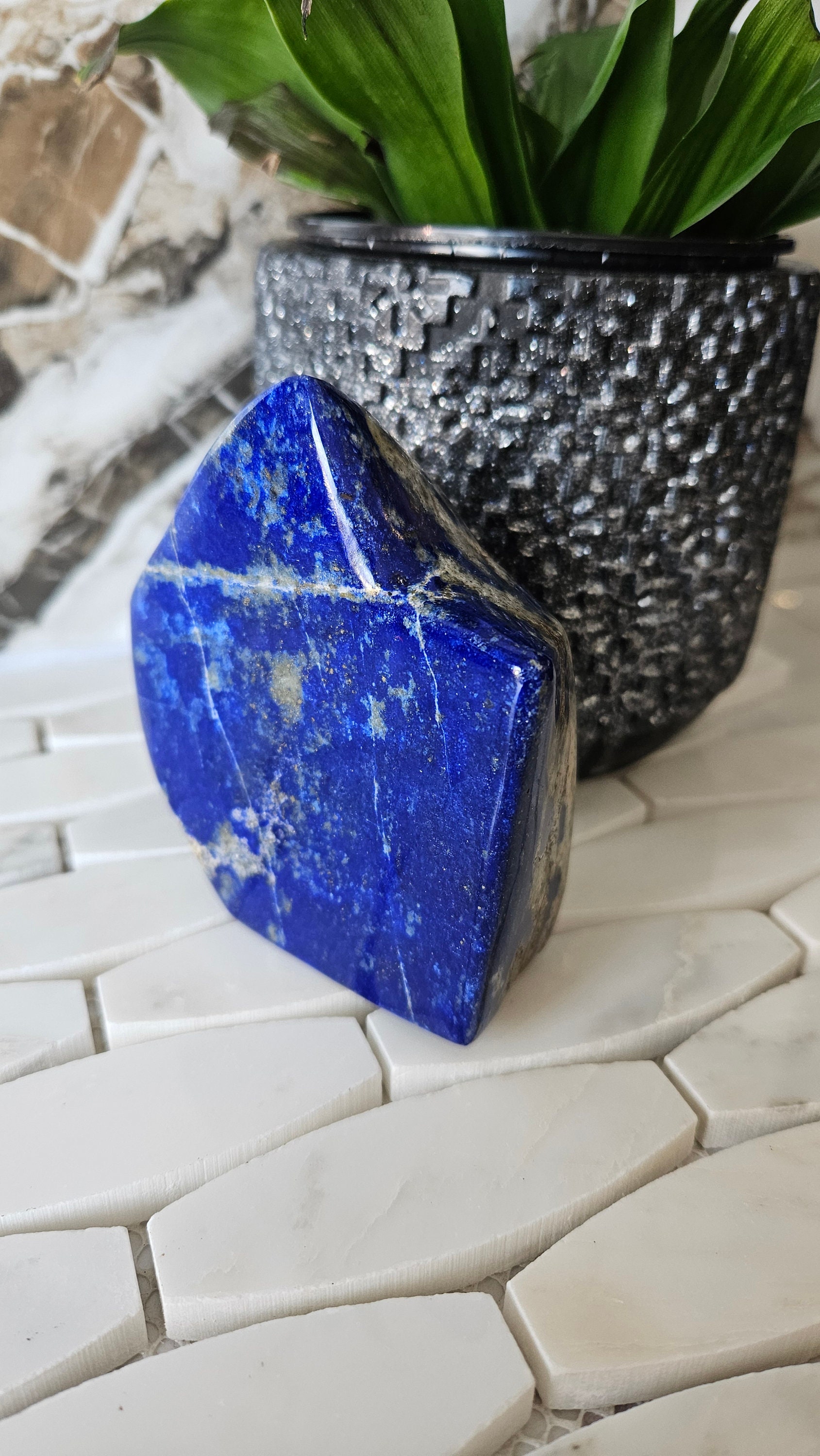 This lapis lazuli is a high-quality gemstone, hand-selected for its exceptional colour and clarity. Its free-form shape allows it to be displayed in a variety of ways, making it a versatile addition to any home or office. Whether you are a collector of fine gemstones or simply appreciate the beauty of natural materials, this lapis lazuli is sure to delight and impress.