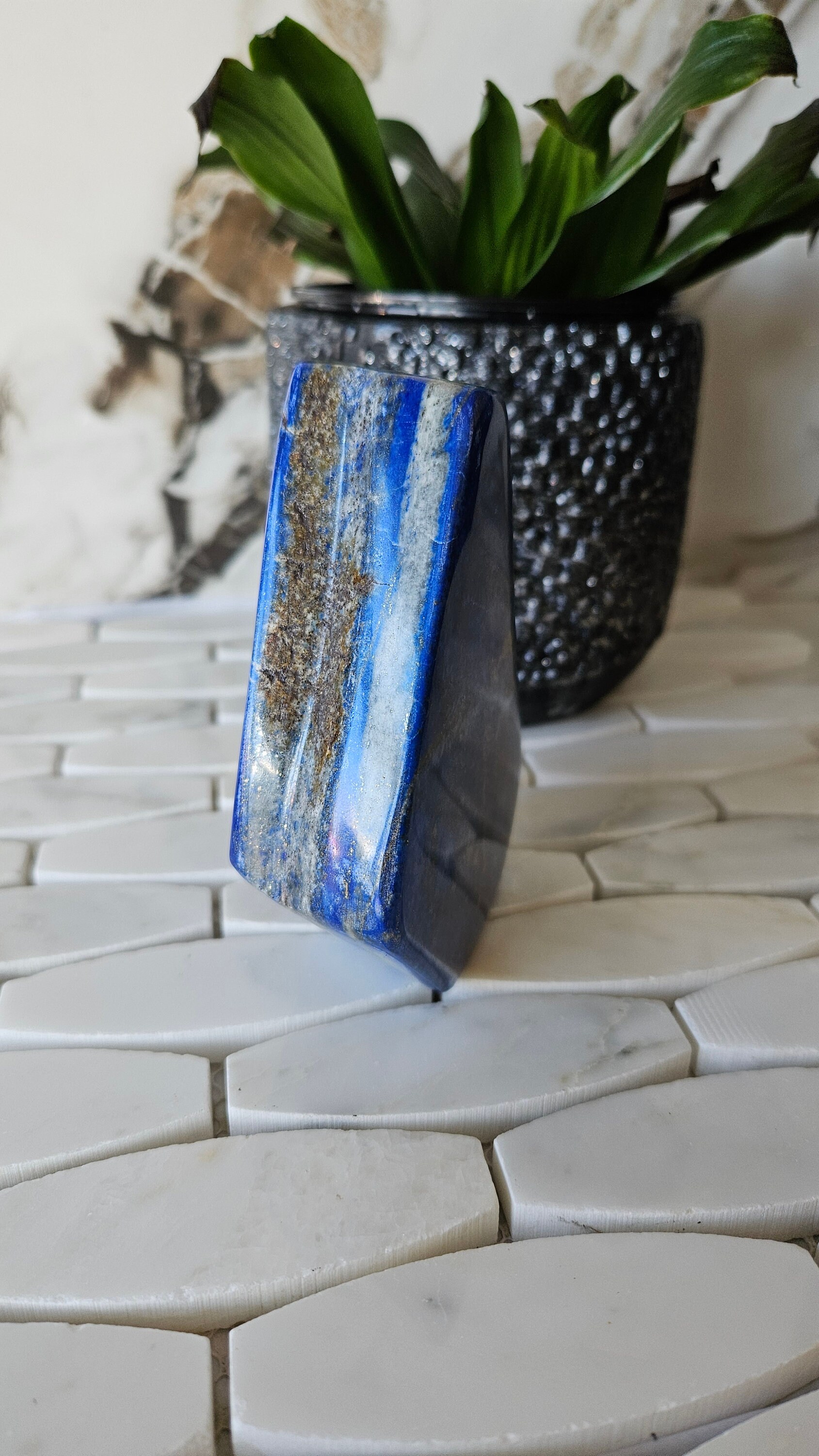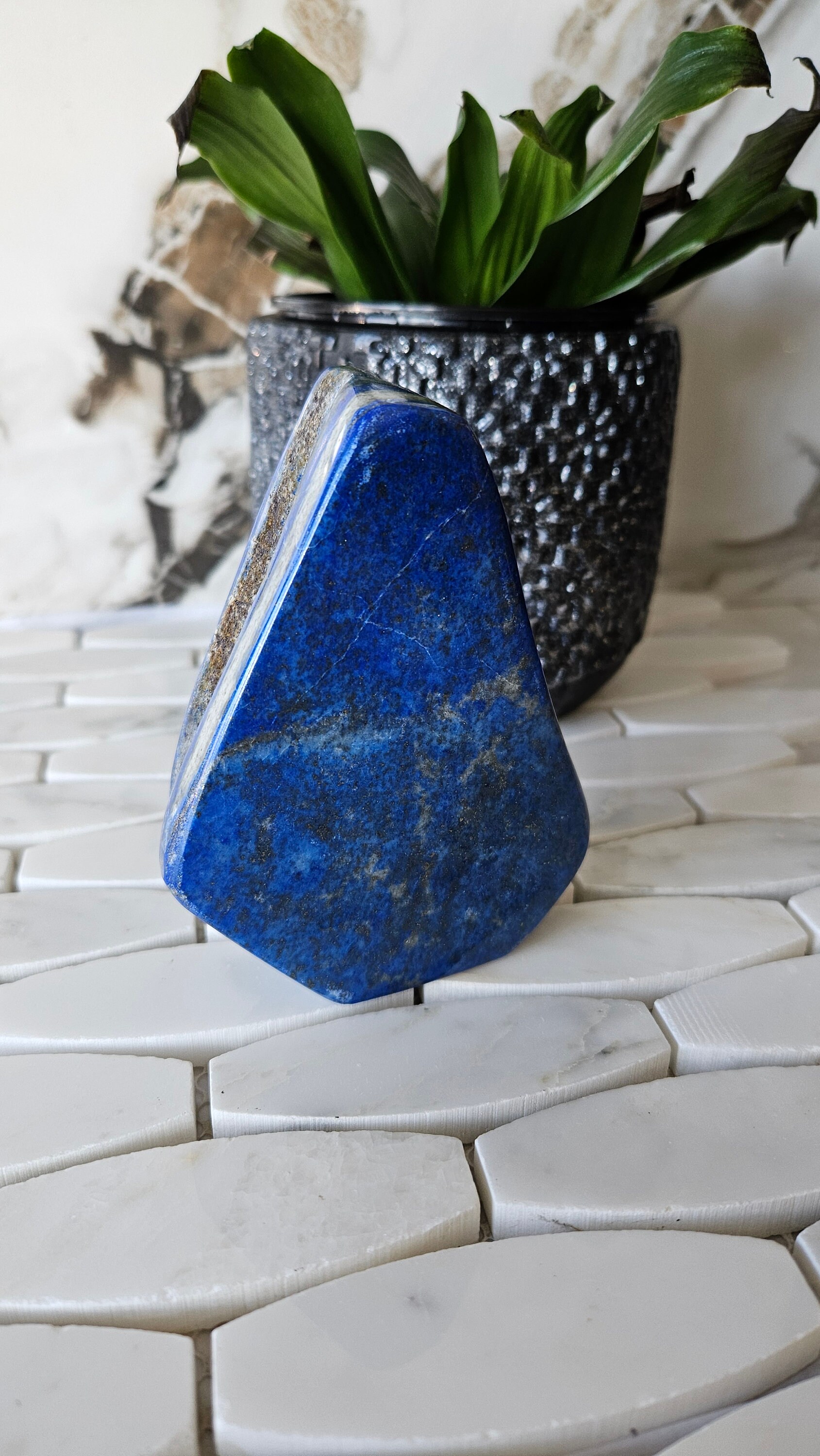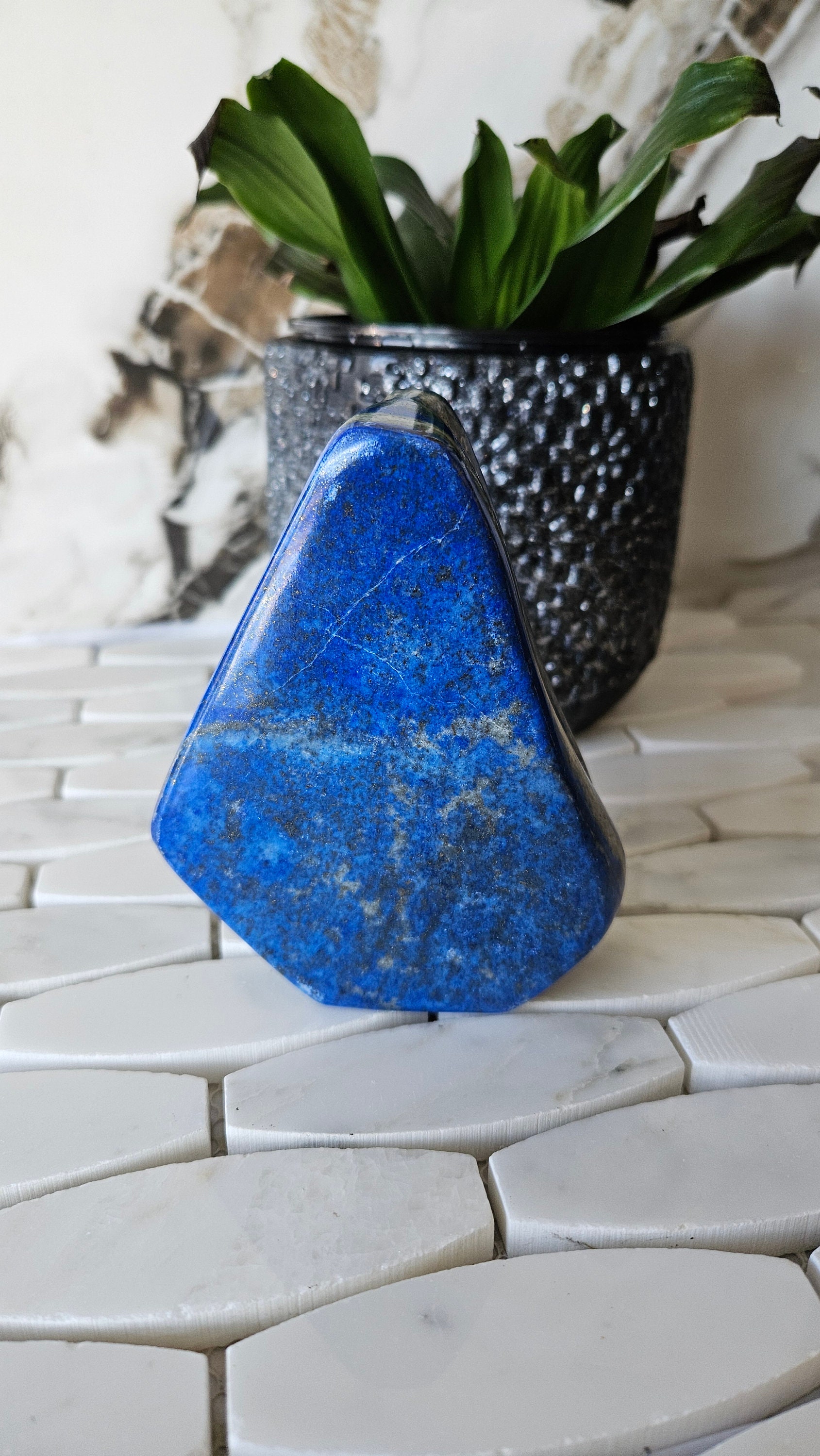 This lapis lazuli is a high-quality gemstone, hand-selected for its exceptional colour and clarity. Its free-form shape allows it to be displayed in a variety of ways, making it a versatile addition to any home or office. Whether you are a collector of fine gemstones or simply appreciate the beauty of natural materials, this lapis lazuli is sure to delight and impress.
