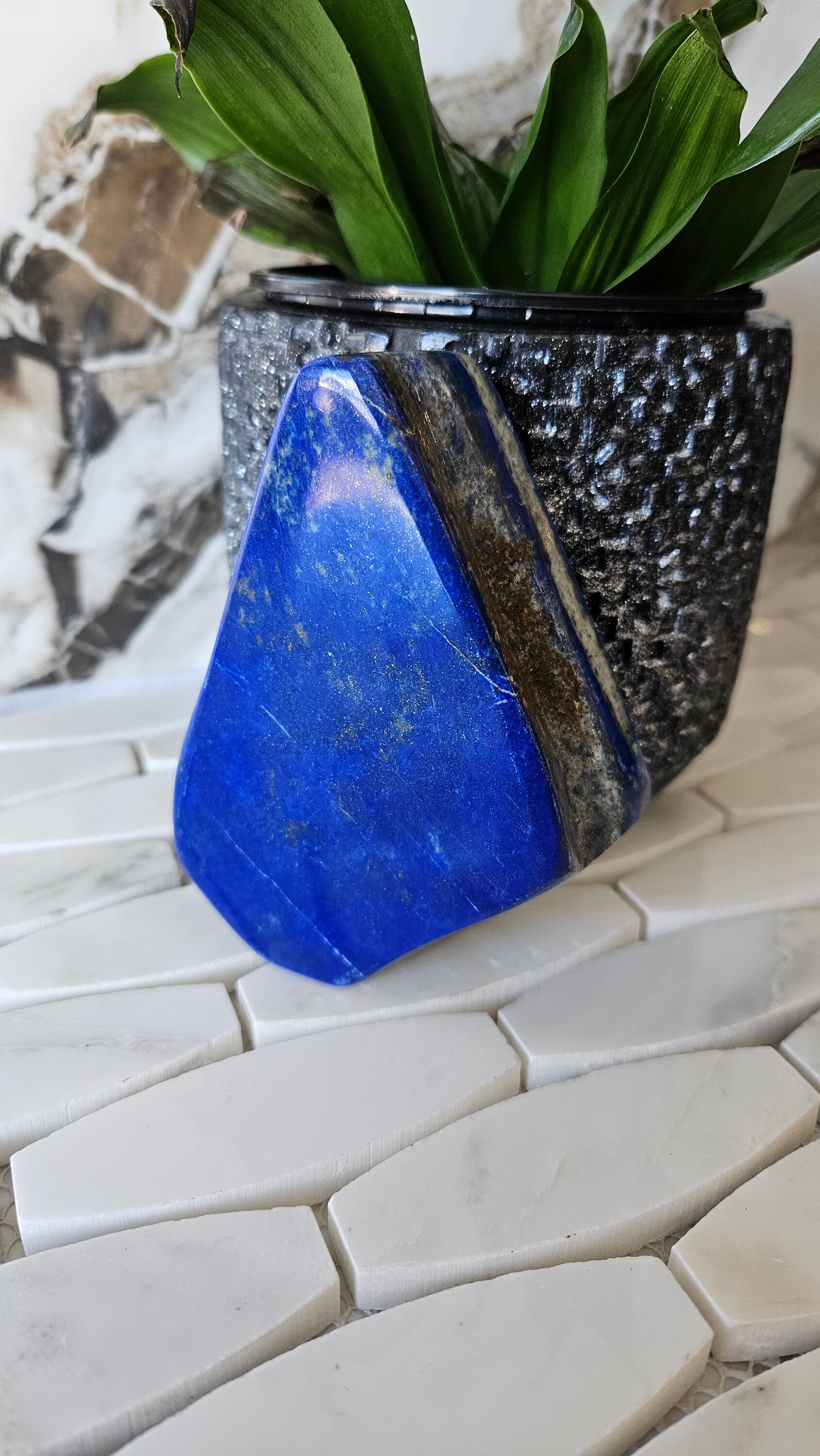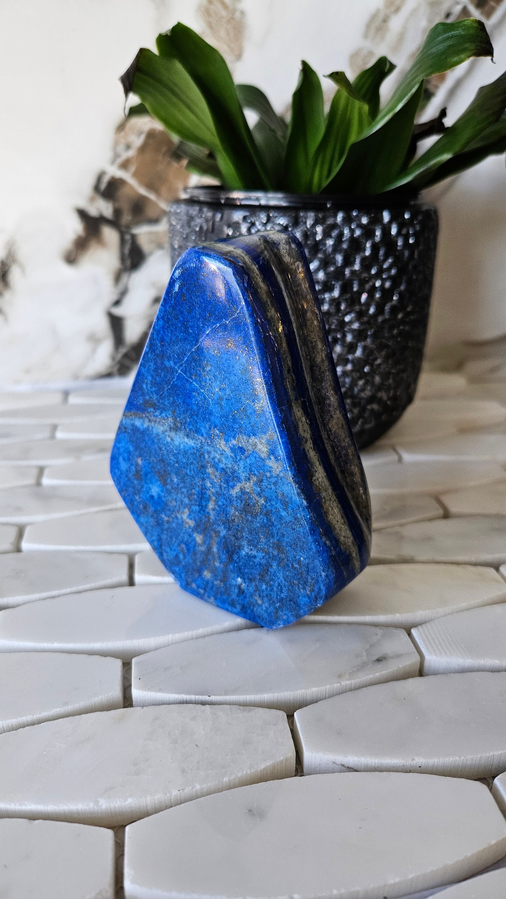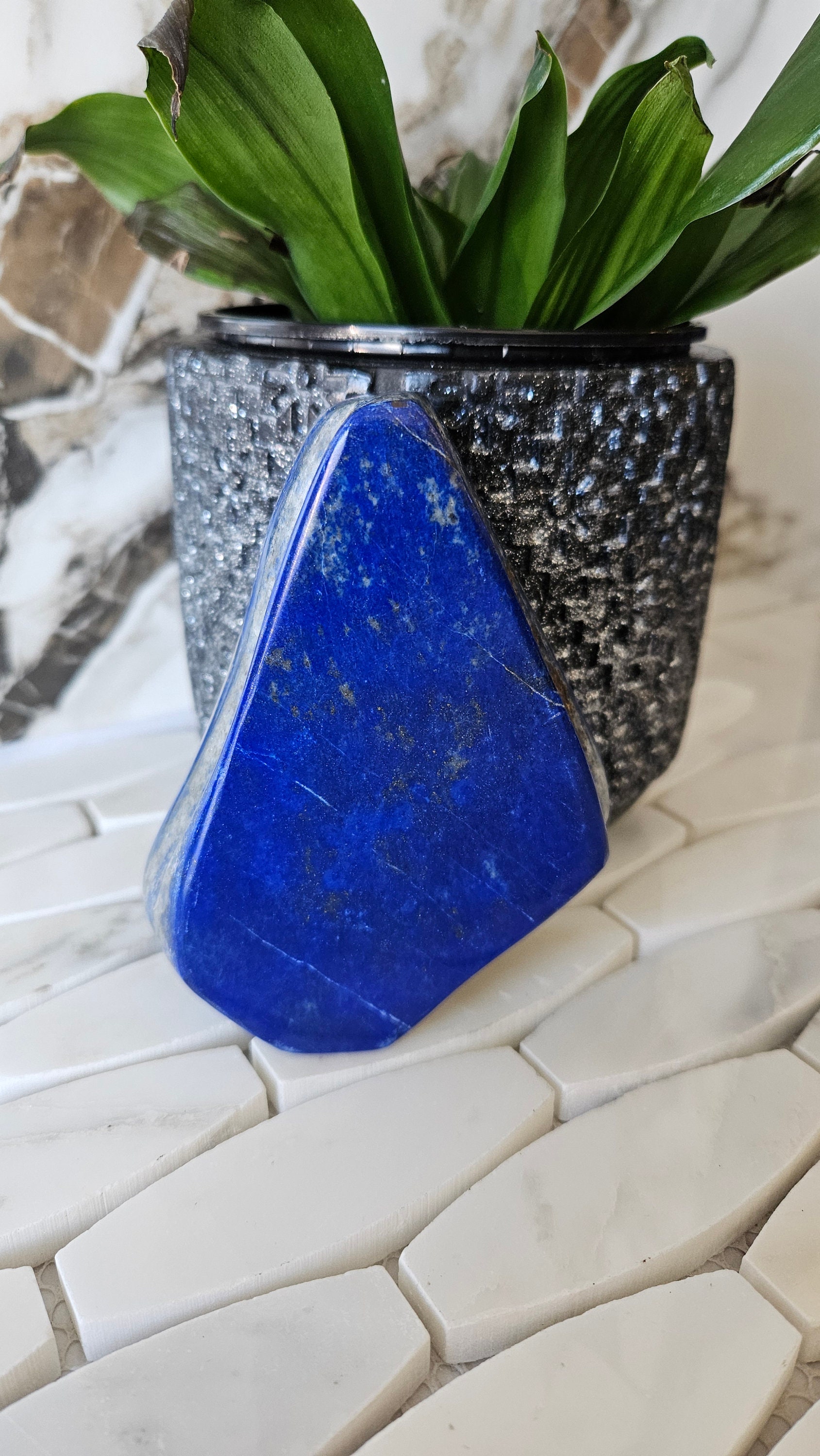 This lapis lazuli is a high-quality gemstone, hand-selected for its exceptional colour and clarity. Its free-form shape allows it to be displayed in a variety of ways, making it a versatile addition to any home or office. Whether you are a collector of fine gemstones or simply appreciate the beauty of natural materials, this lapis lazuli is sure to delight and impress.