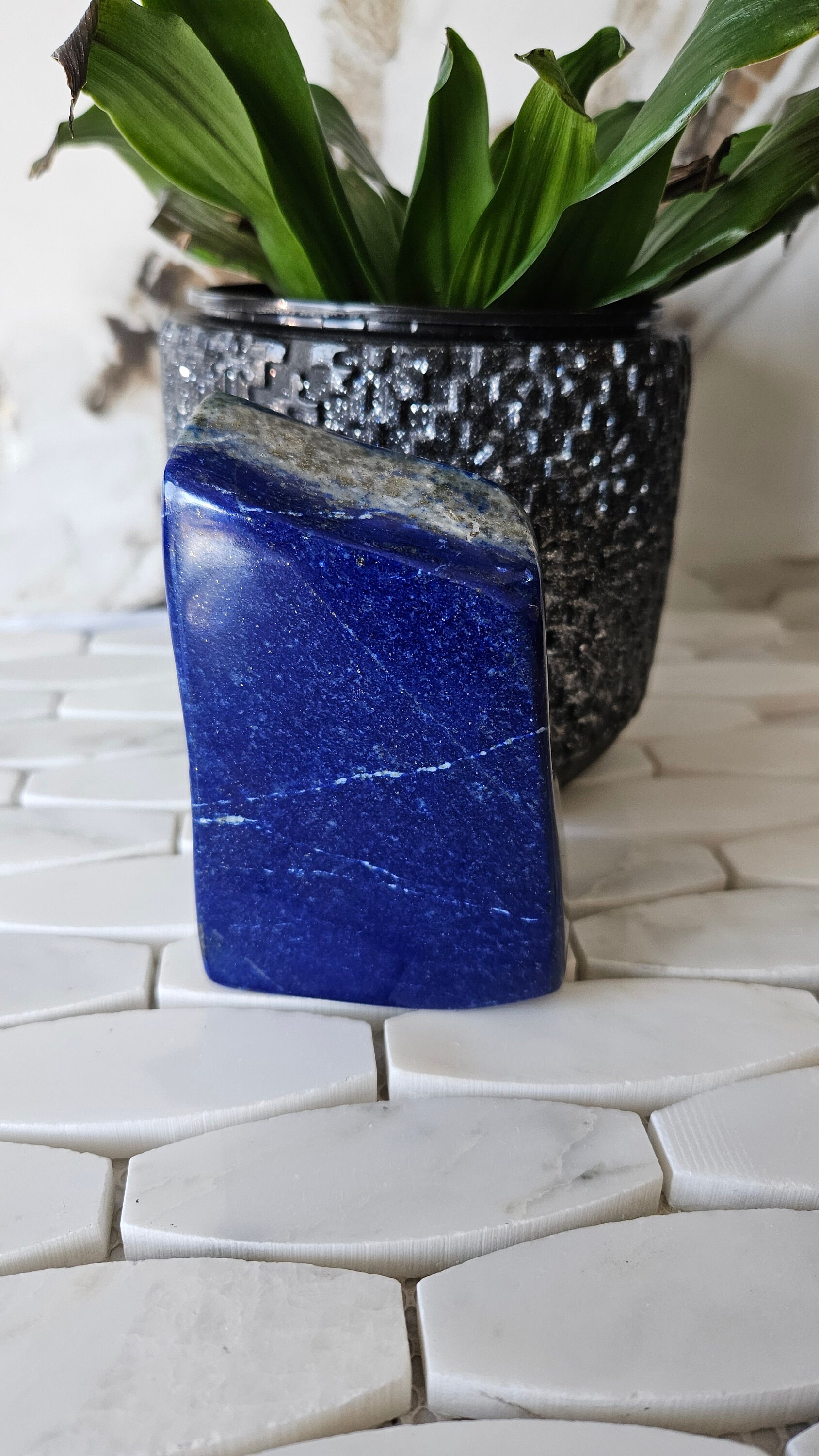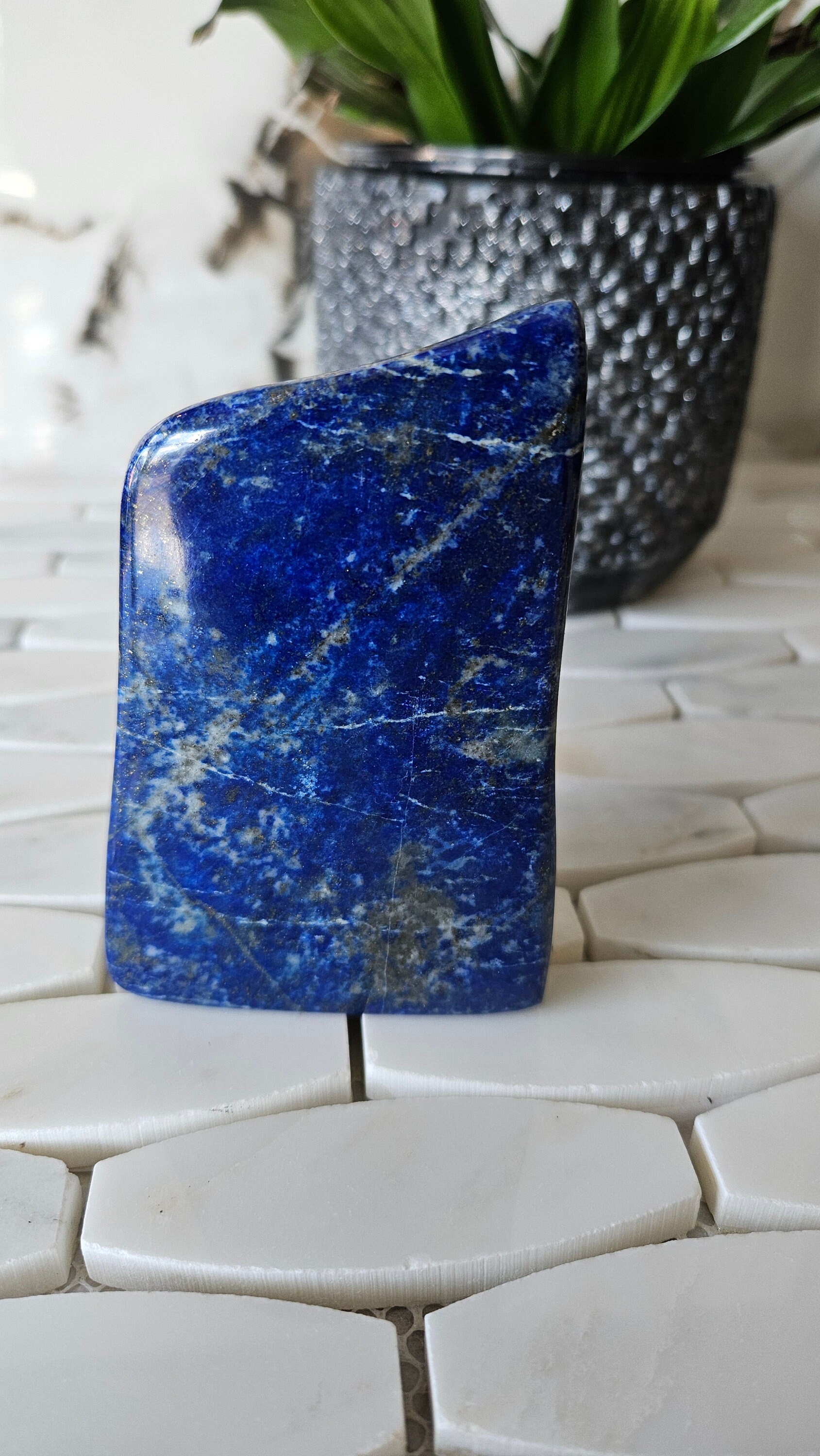 This lapis lazuli is a high-quality gemstone, hand-selected for its exceptional colour and clarity. Its free-form shape allows it to be displayed in a variety of ways, making it a versatile addition to any home or office. Whether you are a collector of fine gemstones or simply appreciate the beauty of natural materials, this lapis lazuli is sure to delight and impress.