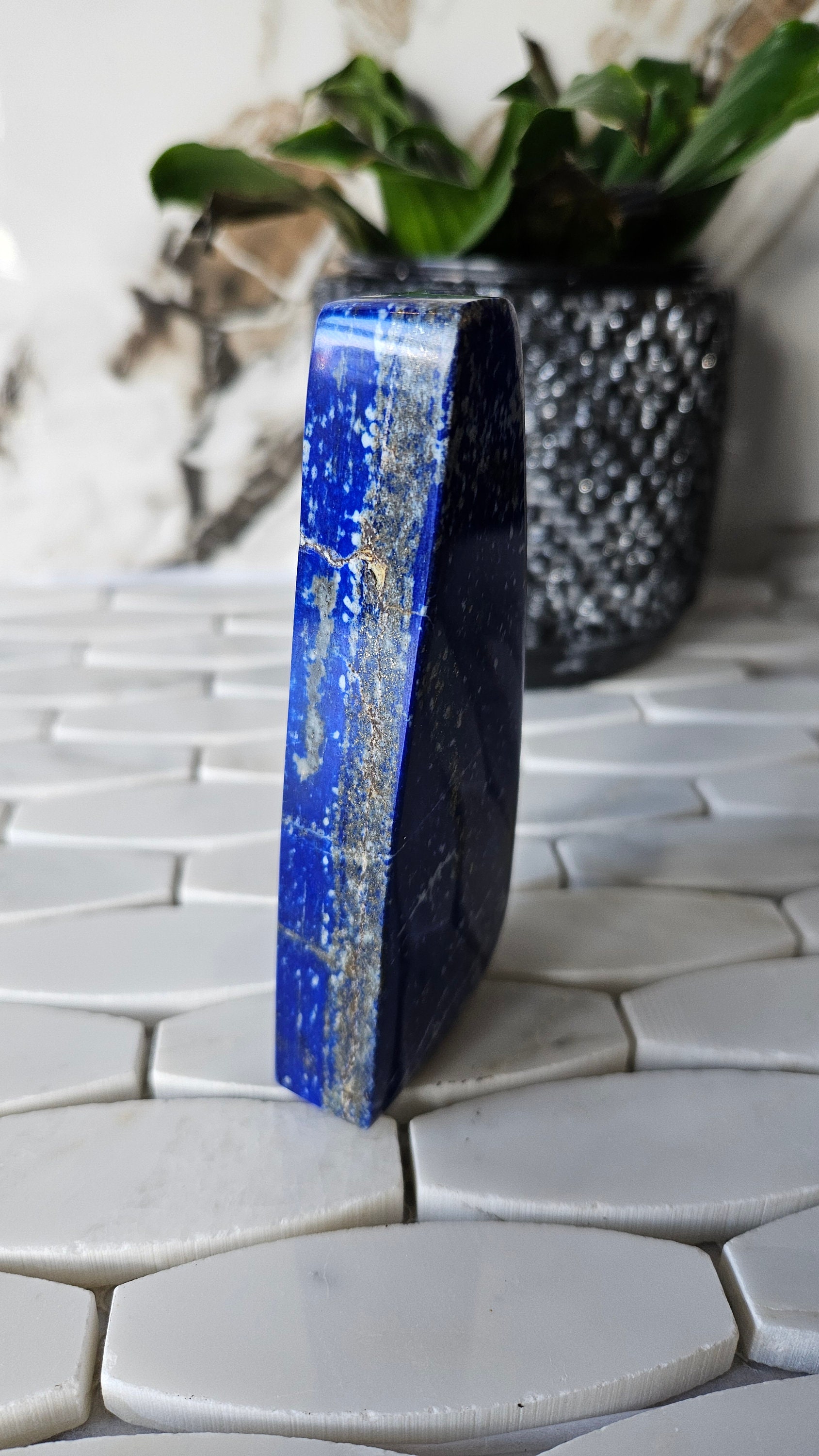 Free Form A+++ Lapis Lazuli, Chakra, polished slab, Tumbled Crystals, natural lapis, Protection, Pyrite slab Nurturing, Decor, birthday gift