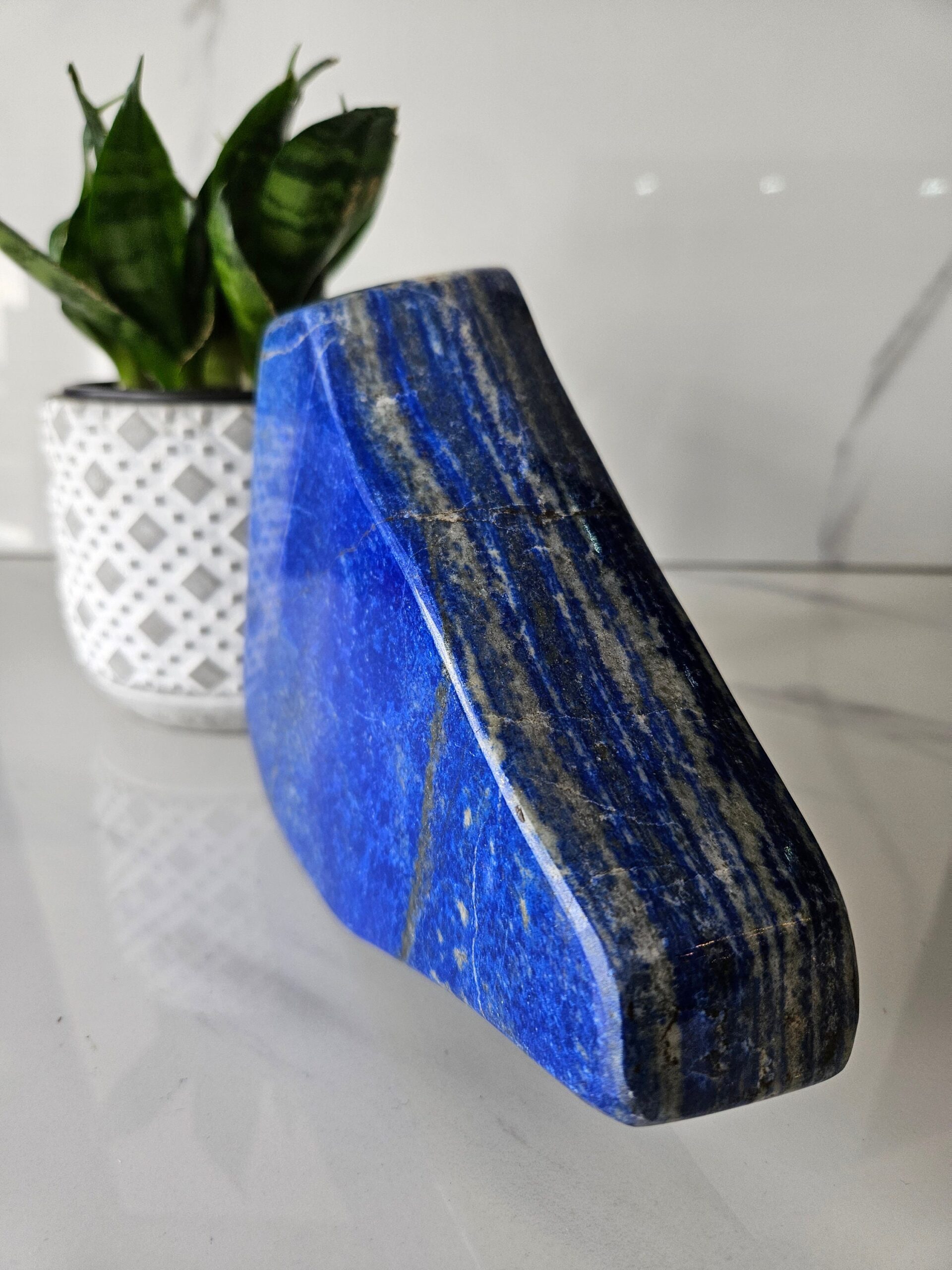 This is a unique A++ Grade Lapis Lazuli from Afghanistan. All the pictures and videos were taken in natural sunlight to showcase its true color, and all the tiny details that make each of the stones unique.